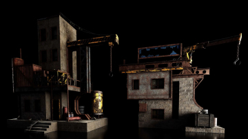 未来世界末日战后废墟荒芜遗弃工厂史诗级游戏场景3D模型素材