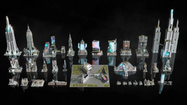 图穷联素材库 » 未来纽约繁华都市摩天大楼博物馆CBD商业酒店3D模型建筑设计
