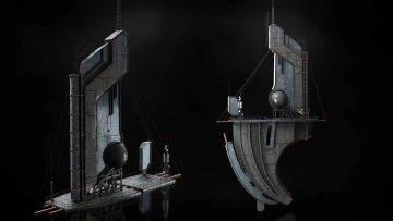 【天空之城】废土风末日战争游戏电影漂浮城市建筑3D模型素材