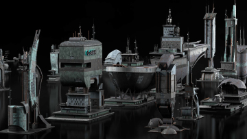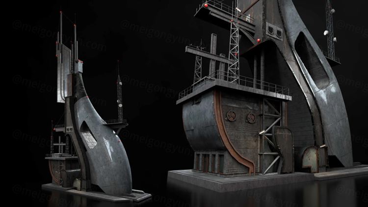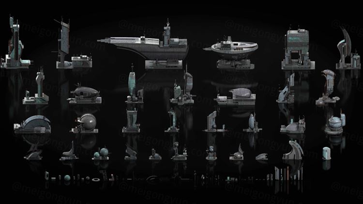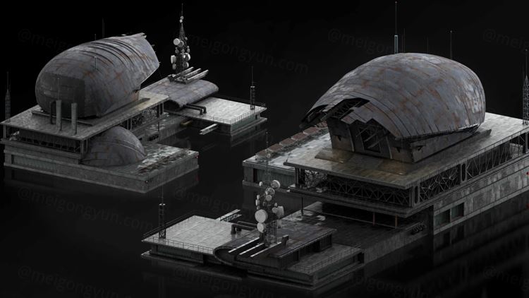图穷联素材库 » 【天空之城】废土风末日战争游戏电影漂浮城市建筑3D模型素材