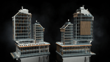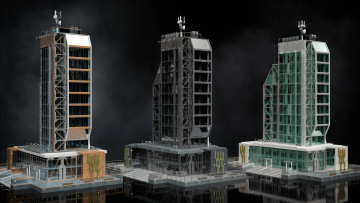 无论您是在设想一个配有透明玻璃覆层和木质装饰的购物中心,还是用反光青色玻璃和拉丝金属建造一个质朴的生物科技园区,还是用深色玻璃和黑钢打造一个气势磅礴的金融区,这款动感套件都将带来创新边缘到您所有的当代或未来城市。