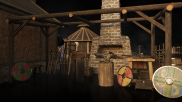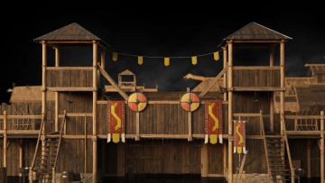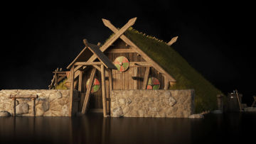 中世纪荣耀维京王国小镇部落小屋宴会厅圣殿建筑3D模型素材 K