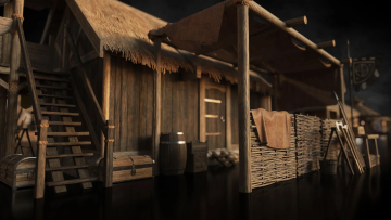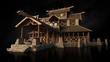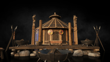 图穷联素材库 » 中世纪荣耀维京王国小镇部落小屋宴会厅圣殿建筑3D模型素材 K