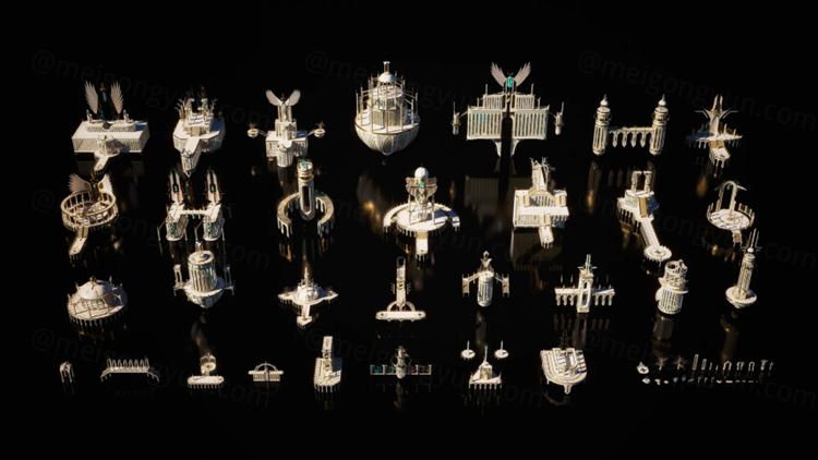 图穷联素材库 » 【天使之城】神域精灵圣殿仙境皇家城堡空中秘境建筑3D模型素材