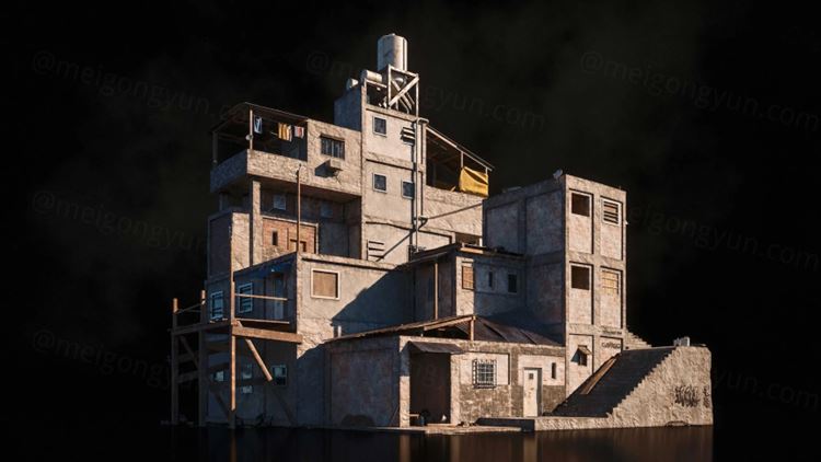 图穷联素材库 » 末日战争游戏系列中东平民窟废弃城市街道建筑3D模型素材 Ki