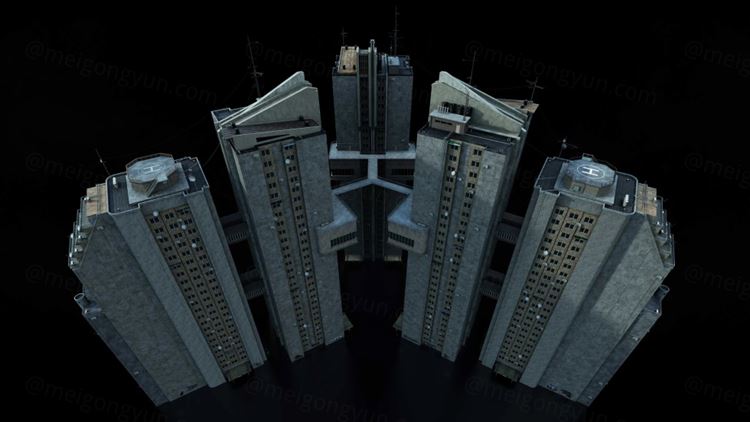 图穷联素材库 » 高质量二战前苏联城市反乌托邦街区基建破旧建筑3D模型素材 K
