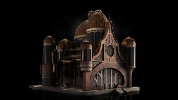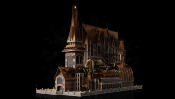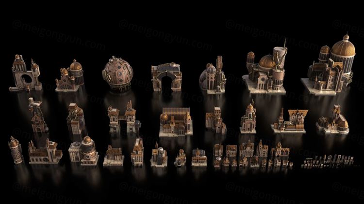 高质量复古蒸汽朋克科学幻想世界城市城堡建筑场景3D模型素材