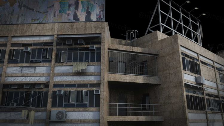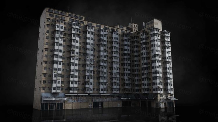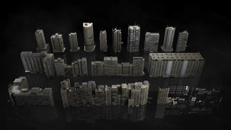 图穷联素材库 » 未来末日战争科幻九龙寨贫民窟楼房建筑群场景3D模型素材 Ki