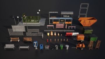 一共包含44组城市街边设施三维模型,可以用围栏,长椅,交通锥和公共汽车站填充任何城市街道或街角。包括梯子,垃圾箱,地铁入口,灯柱,公路隔板等等,让您的城市焕发生机!Mihailo Radosevic的3D模型。纹理由www.textures.com创建 。