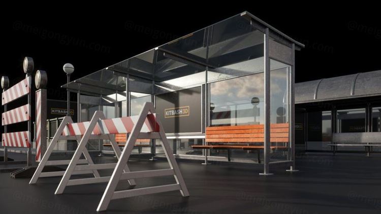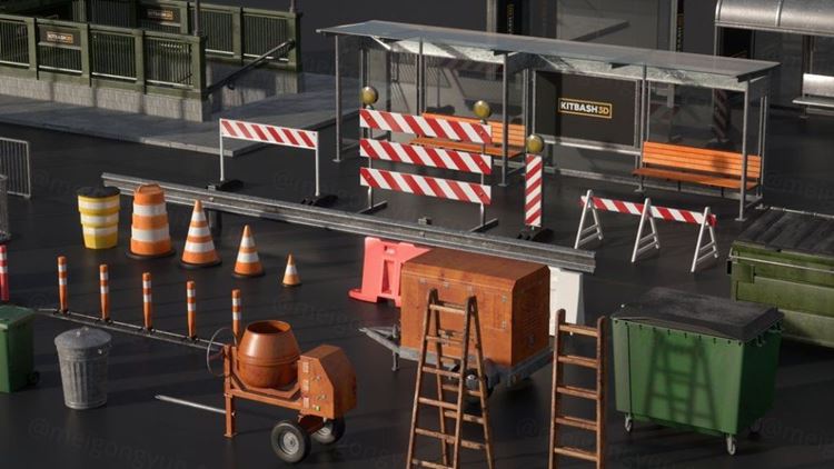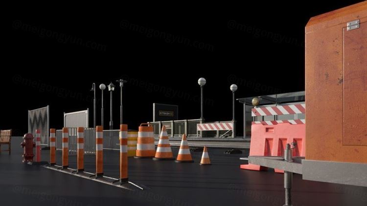 图穷联素材库 » 高质量城市街道交通设施公交站路障安全警示3D模型素材 Kit