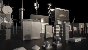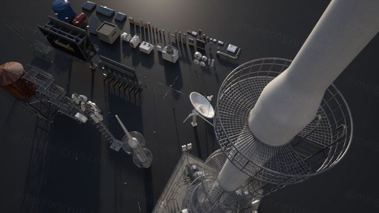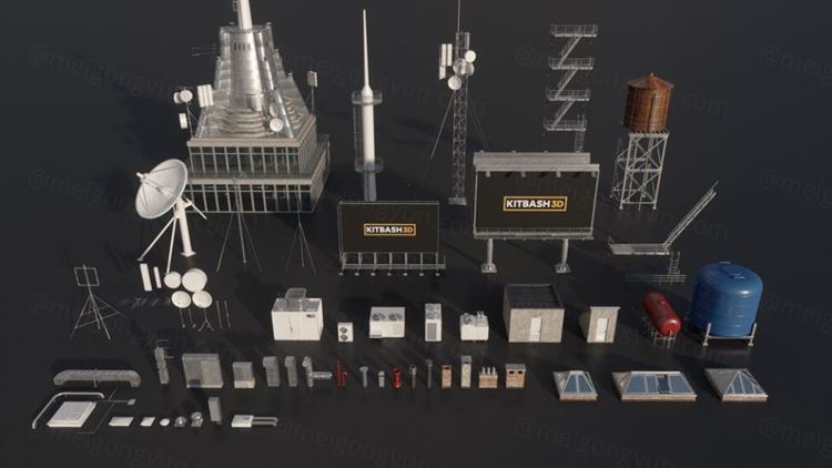 图穷联素材库 » 城市天线信号接受塔高炮广告牌屋顶建设场景3D模型素材 Kit
