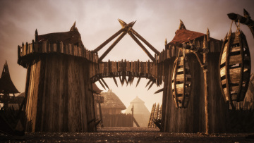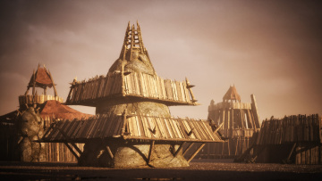 史诗级电影游戏野蛮原始部落茅草屋堡垒生态场景建筑3D模型素材