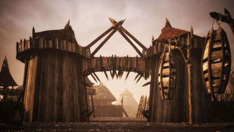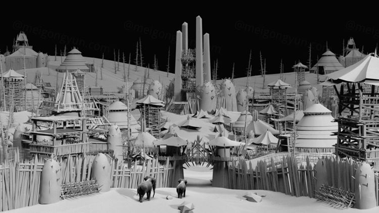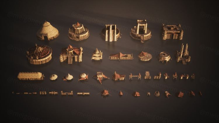 图穷联素材库 » 史诗级电影游戏野蛮原始部落茅草屋堡垒生态场景建筑3D模型素材