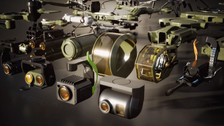图穷联素材库 » 高质量现代战争军用航拍侦查无人机3D模型素材 KitBash
