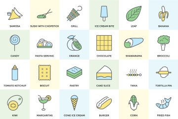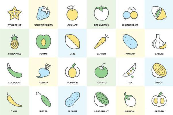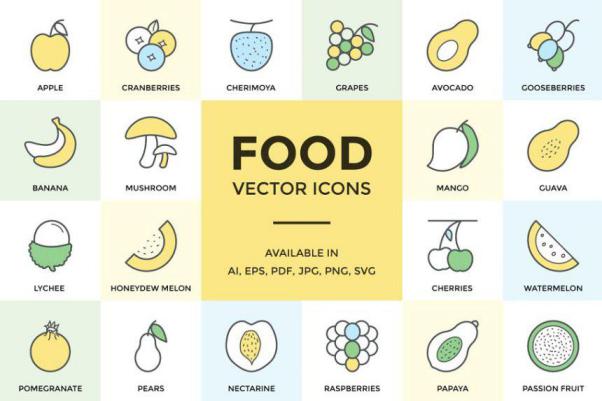 图穷联素材库 » 食物水果矢量图标下载 100 Food Vector Icons