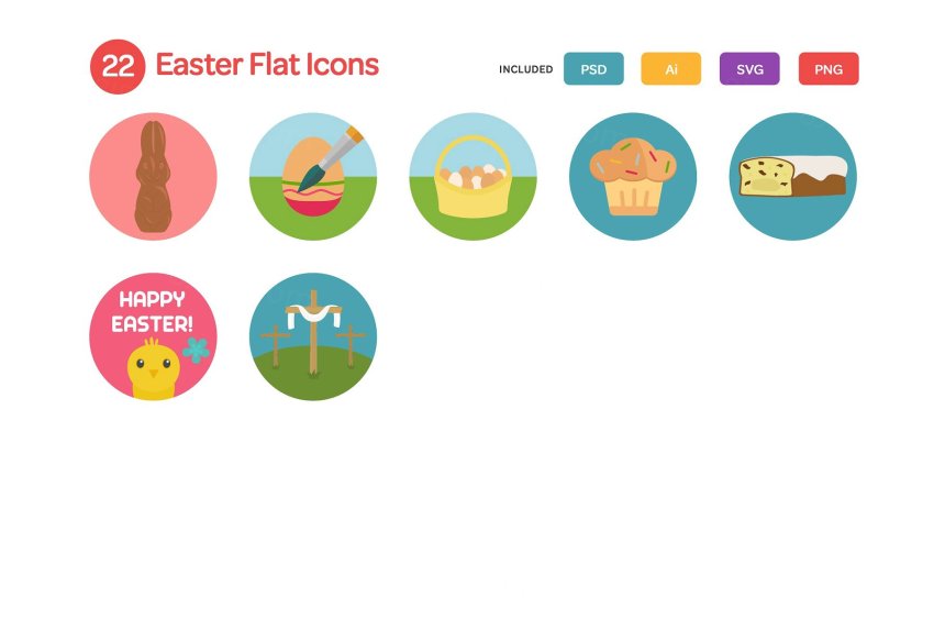 图穷联素材库 » 感恩节矢量图标下载 Easter Flat Icons Set