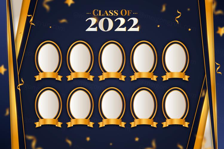 图穷联素材库 » 2022年金色边框毕业季照片墙年鉴名人榜毕业艺术典礼矢量模板