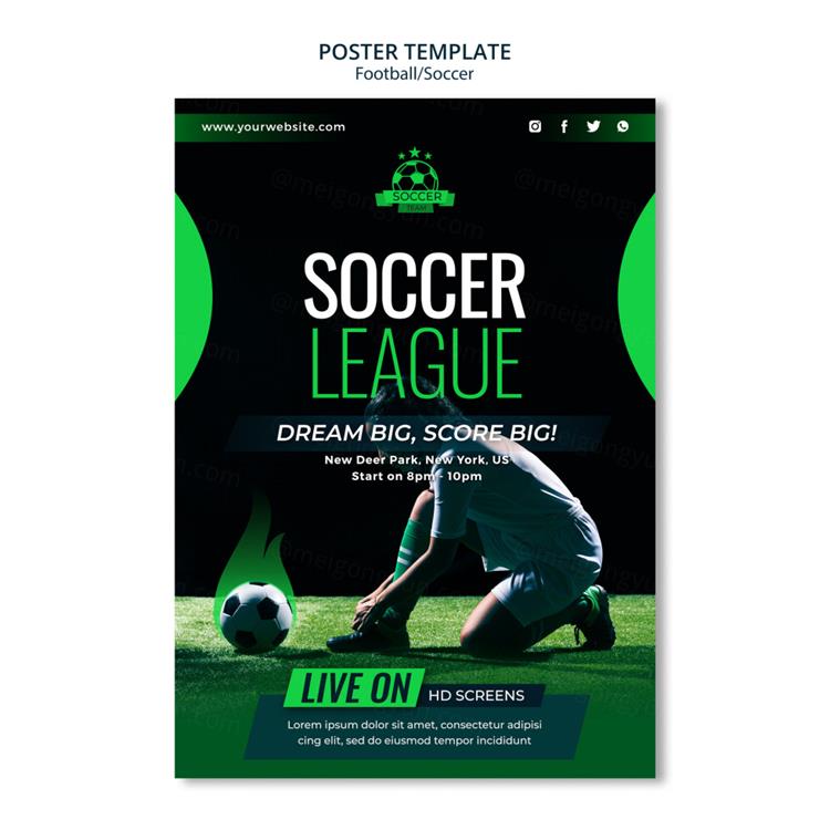 绿色足球体育竞技私人教练运动健康宣传PSD海报模板素材