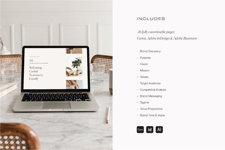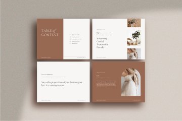 此模板非常适合从事电子商务、设计师、摄影师、生活方式、时尚、美容博主、创意企业、化妆师和造型师等在线业务的女士创业者。如果您是一名设计师,那么在设计他们的品牌之前,这是一本非常适合您的客户的工作手册。