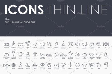 海洋元素icon图标下载 Sea thinline icons