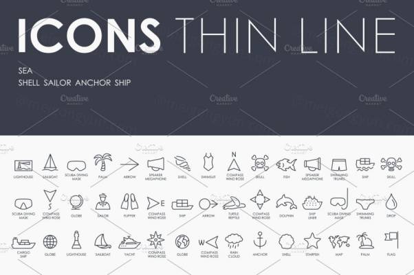 图穷联素材库 » 海洋元素icon图标下载 Sea thinline icons