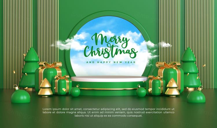 图穷联素材库 » 圣诞节新年快乐3D元素装饰绿色背景节日促销海报PSD模板