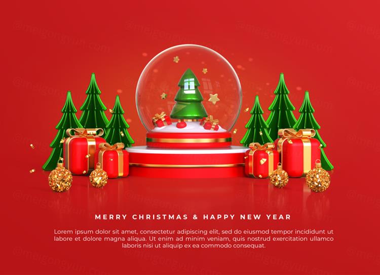 图穷联素材库 » 圣诞节新年快乐3D元素装饰红色背景节日促销海报PSD模板
