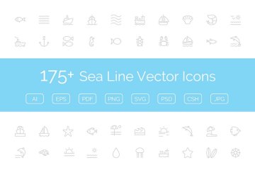 海洋元素矢量图标大全 175 Sea Line Vector Icons