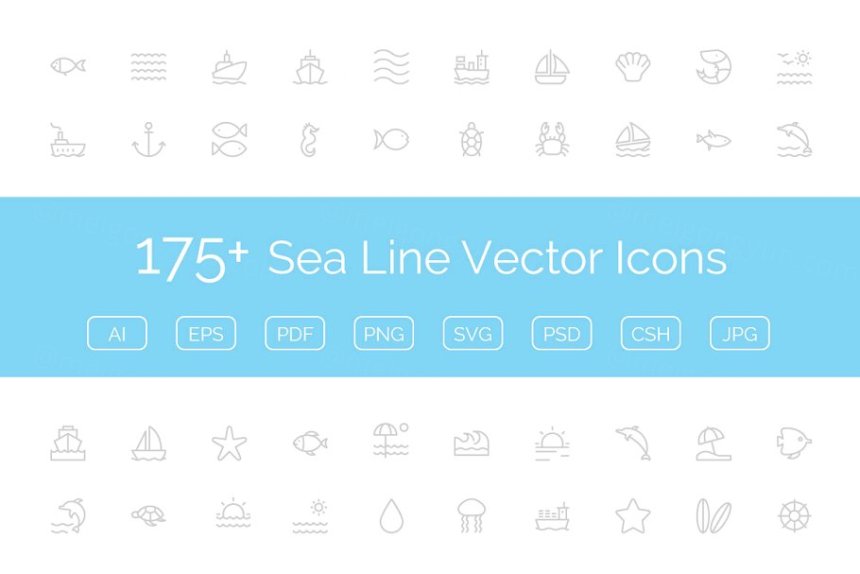 图穷联素材库 » 海洋元素矢量图标大全 175 Sea Line Vector Icons