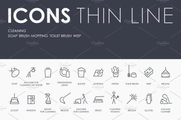 清洁图标下载 Сleaning thinline icons
