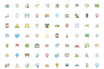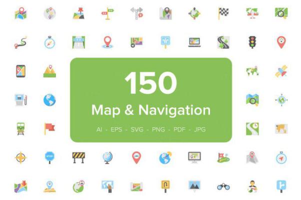图穷联素材库 » 地图和导航平面图标素材 150 Map and Navigation Flat