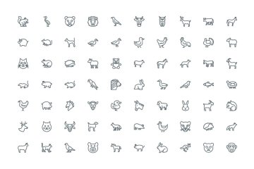 动物矢量图标素材 120 Animals Line Icons