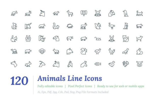 图穷联素材库 » 动物矢量图标素材 120 Animals Line Icons