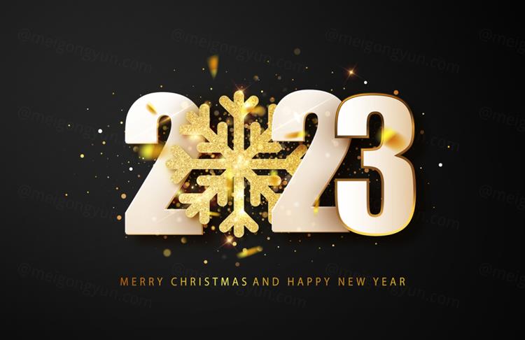 图穷联素材库 » 2023年新年快乐礼盒火花数字跨年海报EPS矢量横幅Bann