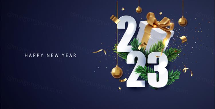 图穷联素材库 » 2023年新年快乐礼盒火花数字跨年海报EPS矢量横幅Bann