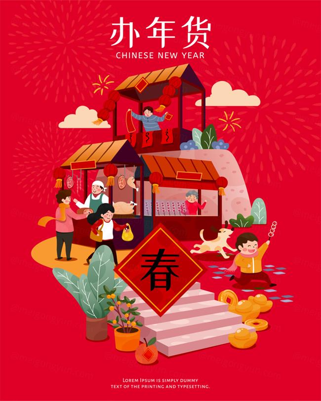 图穷联素材库 » 2023年中国年春节农历兔年东方传统佳节办年货赶大集抢年货E