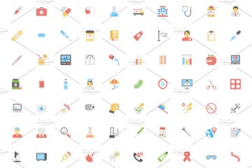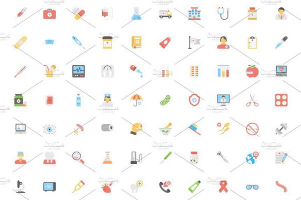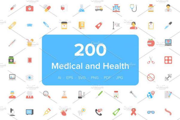 图穷联素材库 » 健康医疗图标下载 200 Medical and Health Flat Ico
