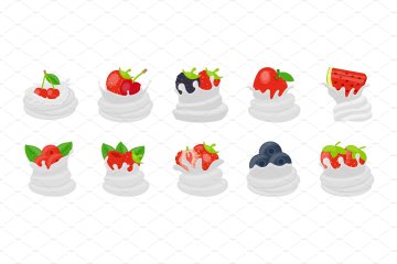 生日蛋糕矢量图标素材 25 Whipped Cream Fruit Flat I
