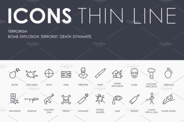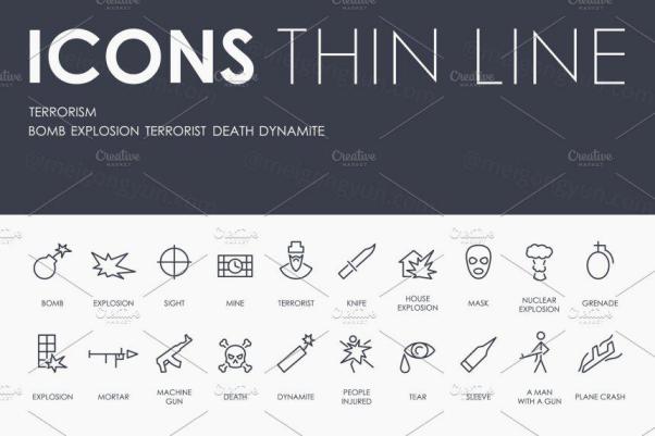 图穷联素材库 » 反恐矢量图标下载 Terrorism thinline icons
