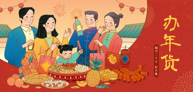 图穷联素材库 » 2023年农历兔年中国年传统佳节新年快乐卡通人物办年货赶大集