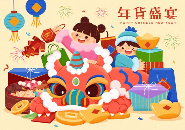 图穷联素材库 » 2023年农历兔年中国年传统佳节新年快乐卡通人物办年货赶大集