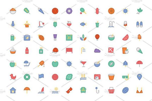图穷联素材库 » 夏季矢量图标下载 150 Summer Colored Icons