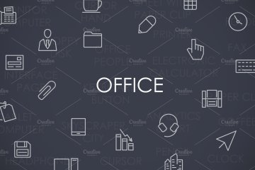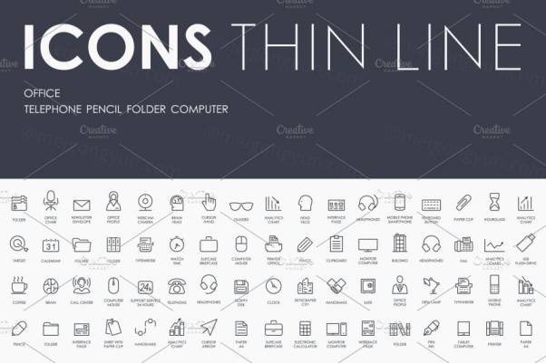图穷联素材库 » 办公元素矢量图标设计 Office thinline icons