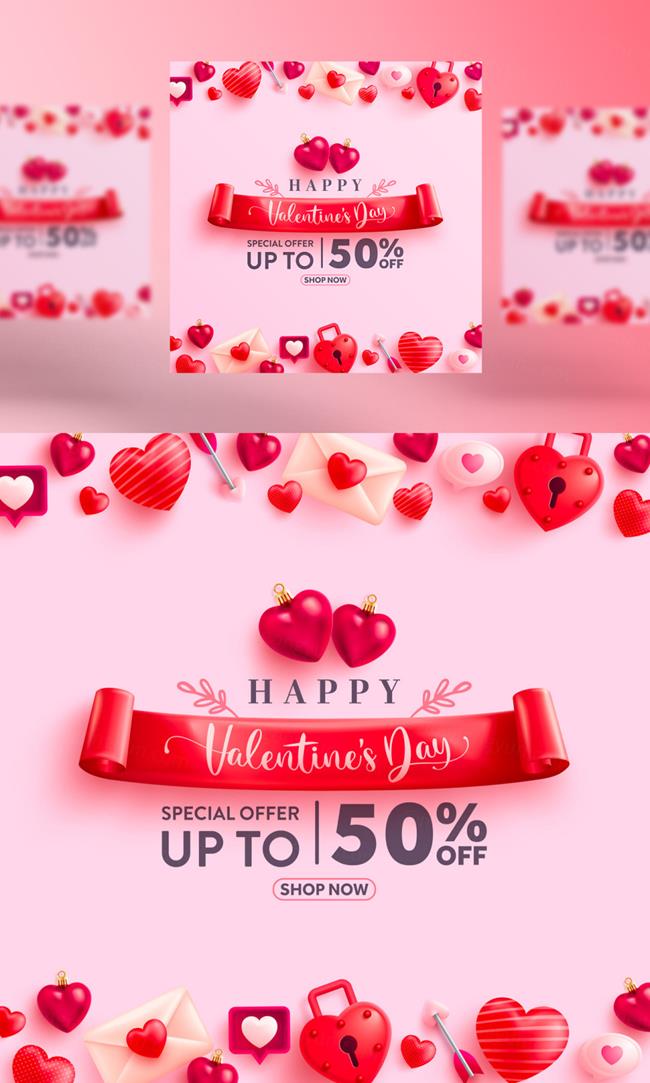 图穷联素材库 » 高质量粉色时尚情人节七夕三八妇女节爱心礼盒节日促销横幅海报E