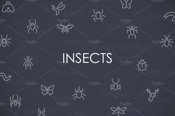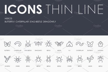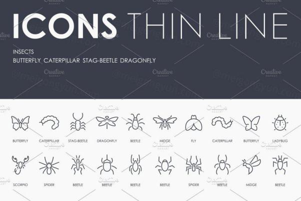 图穷联素材库 » 昆虫矢量图标大全 Insects thinline icons