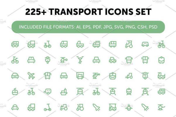 图穷联素材库 » 交通工具矢量图标大全 225 Transport Icons Set
