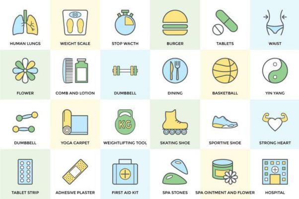 图穷联素材库 » 100 健身和健康图标素材 100 Fitness and Health Ic