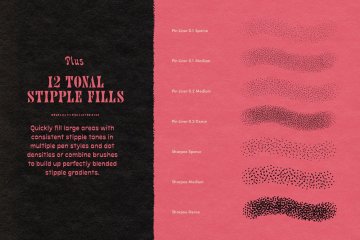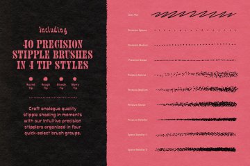 Stipple Studio 的构建考虑了专业插画家和纹身艺术家的需求,将模拟点画的人文主义温暖与数字工作流程的效率相结合,在不牺牲工艺或质量的情况下创建外观和感觉合法的点画。