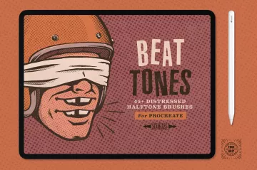出色地拍打半色调以满足内部的污垢!我们的 Beat Tones 笔刷套装包含超过 45 种用于 Procreate 的仿旧半色调笔刷,可随时处理您可以扔给它们的任何东西。无论是为您的作品添加渐变阴影还是连续色调,Beat Tones for Procreate 都能为您提供各种网点和线条图案,这些图案由真实的源材料以多个屏幕角度制成。