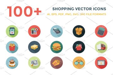 图穷联素材库 » 购物平面矢量图标素材 100 Shopping Flat Vector Ico